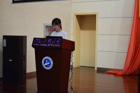 在校生代表16级生物工程专业的田万里同学也结合自身的学习、生活的经验,向学弟学妹们表达了希望大家能充实大学时光,为自己的前程而努力奋斗的期愿。