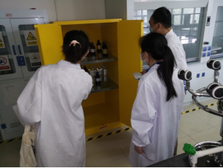 本次检查对学院办公室、一号实验楼、大化工1号楼、大化工2号楼及创新创业基地逐一进行了检查,对大型仪器使用管理、危化品管理、通风设备、用水用电安全、仪器设备布置摆放、实验废弃物的处置、实验室的卫生等情况进行了排查。检查过程中,检查组仔细查看各个实验室的具体情况,重点对上个月环境卫生检查不达标的实验室进行了回头看,检查实验室整改情况,并详细询问实验室人员有关安全防范措施,对发现的问题进行详细记录。